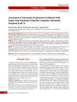 Association Between Autonomic Dysfunction and Empty Nose Syndrome May 30, 2025 Cheng-Yu Li, Ta-Jen Lee, Yi-Wei Chen, Po-Hung Chang, Ya-Cheng Tang, Yu-Chieh Chen, Shu-Yen Wan, Chia-Hsiang Fu Findings demonstrate a significant association between ENS and autonomic dysfunction, with more severe cases of ENS presenting with a greater degree of autonomic dysfunction. Journal Article |